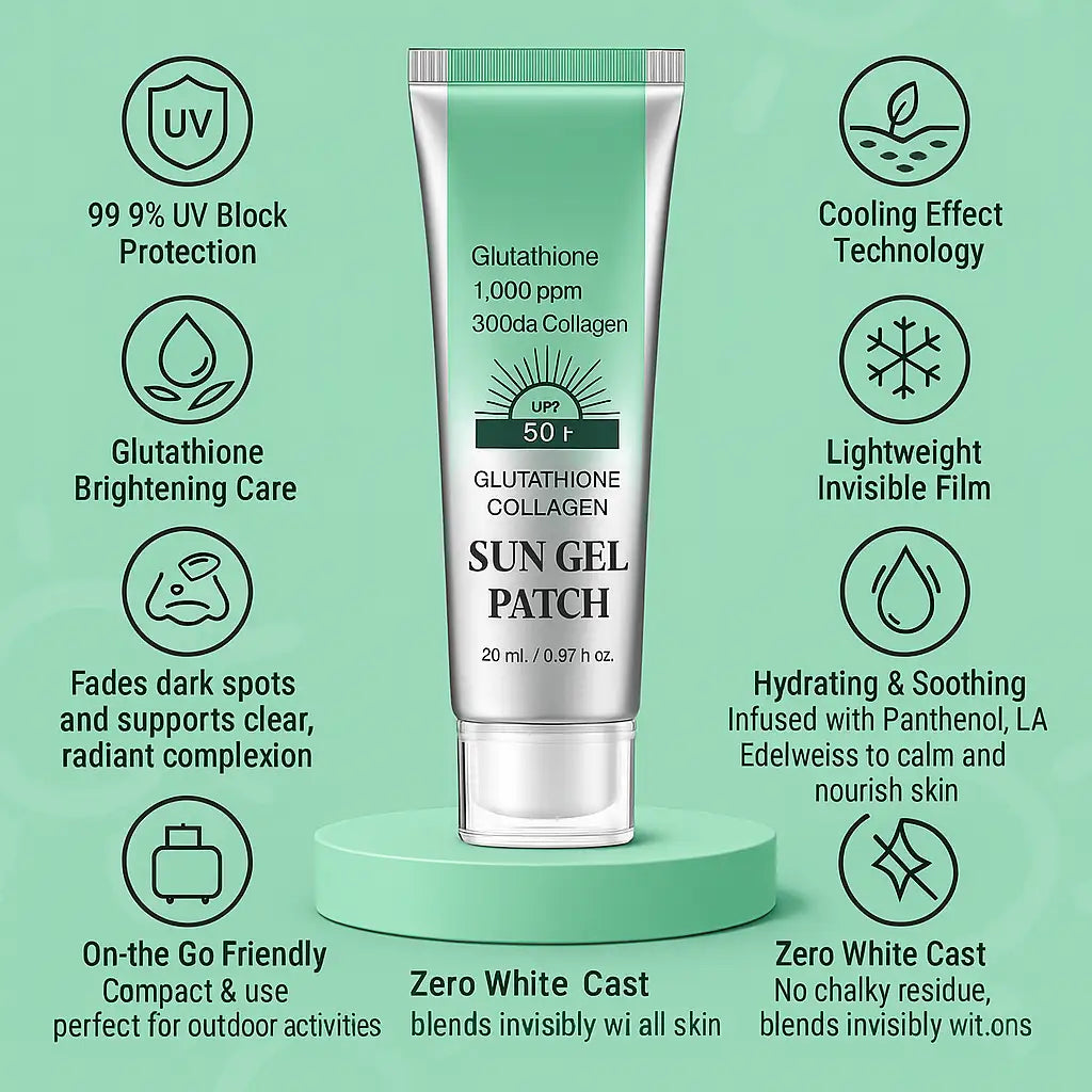 Why settle for basic SPF? Infused with Glutathione & Collagen, this patch hydrates, brightens, supports elasticity, and blocks sun damage—like a skincare mask outdoors.