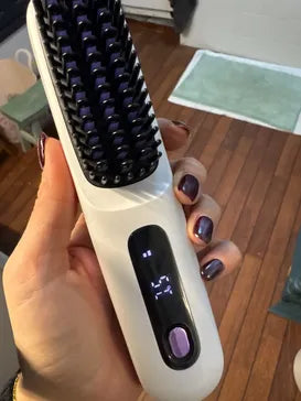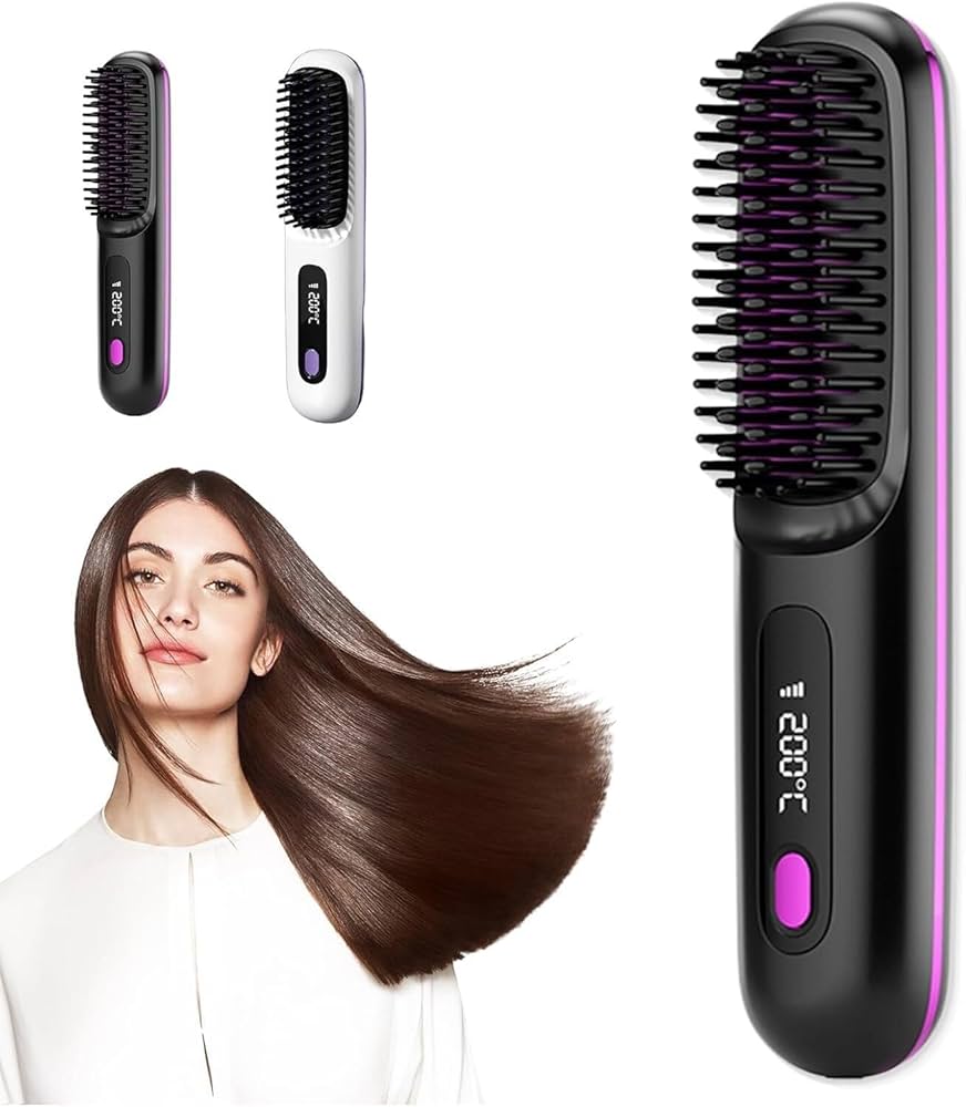 Heat control and advanced ionic technology that tames frizz and boosts shine. Whether you're prepping for the day or need a quick refresh, this cordless straightening brush is designed for fast, effortless styling—anytime, anywhere. Enjoy professional-quality results without the hassle or cost of a salon visit.