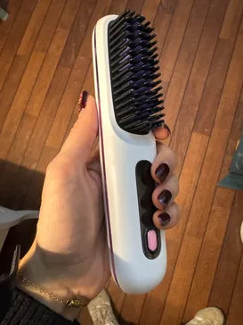 The Cordless Hair Straightener Brush glides smoothly, offering effortless styling with secure, comfortable use all day.