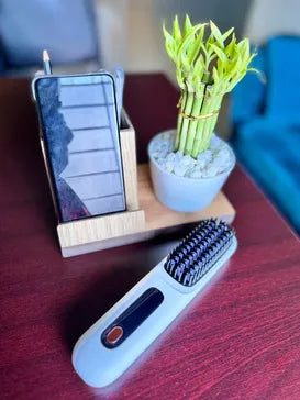 The Cordless Hair Straightener Brush uses advanced ceramic heat technology, ensuring smooth, frizz-free hair with long-lasting results.