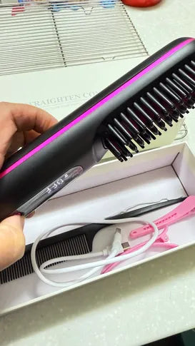 Achieve sleek, frizz-free hair anytime, anywhere with this portable, USB-rechargeable straightening brush. Featuring four heat settings and negative ion technology, it provides fast, smooth styling without the hassle of cords. Perfect for on-the-go touch-ups or a full styling session, your hair will look flawless wherever life takes you.