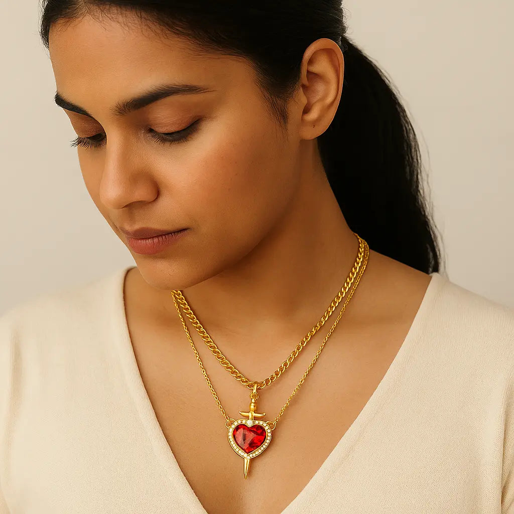 Megha June 2025Verified BuyerNice Product“I’ve bought lots of online jewelry before but this is by far the most meaningful piece I’ve come across. The contrast between the red heart and the sword pendant is striking. Got compliments from friends already!”Love's Duel: Heart & Sword Necklace Was this helpful? 0 0