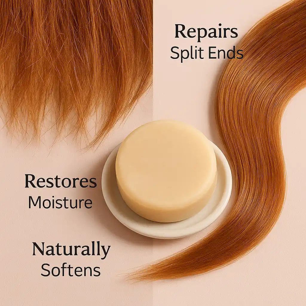 This conditioner bar penetrates deep to restore moisture where your hair needs it most. It smooths split ends, softens rough strands, and brings your hair back to life—naturally.