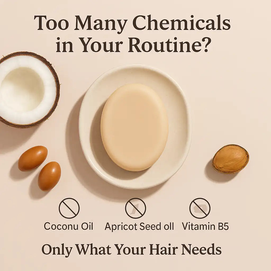 Infused with the goodness of nature, this bar combines Coconut Oil, Shea Butter, Argan Oil, and Ginger Extract to deeply hydrate, repair damage, restore shine, and promote scalp health. No chemicals. Just pure care.