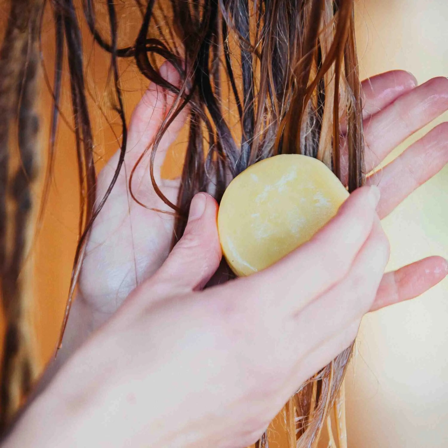 Just glide the wet bar directly onto damp hair after shampooing. Massage gently, leave for 1–2 minutes, then rinse off. It melts into a creamy texture that spreads easily.