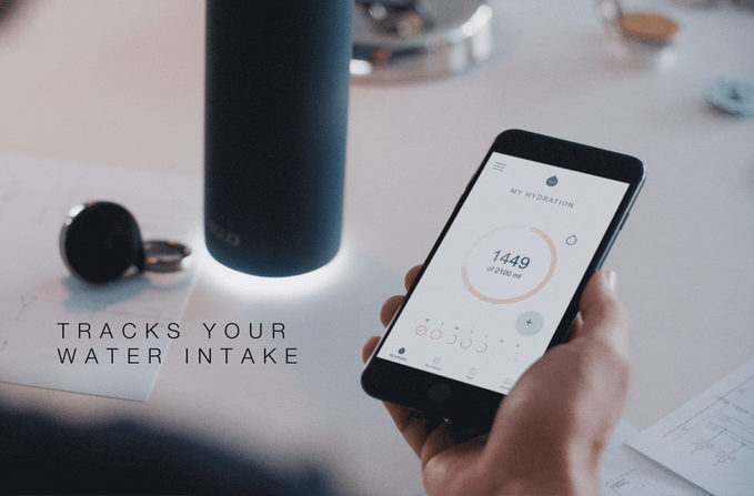 The bottle has a built-in LED ring that glows gently and sends app notifications to remind you to sip water at regular intervals.
