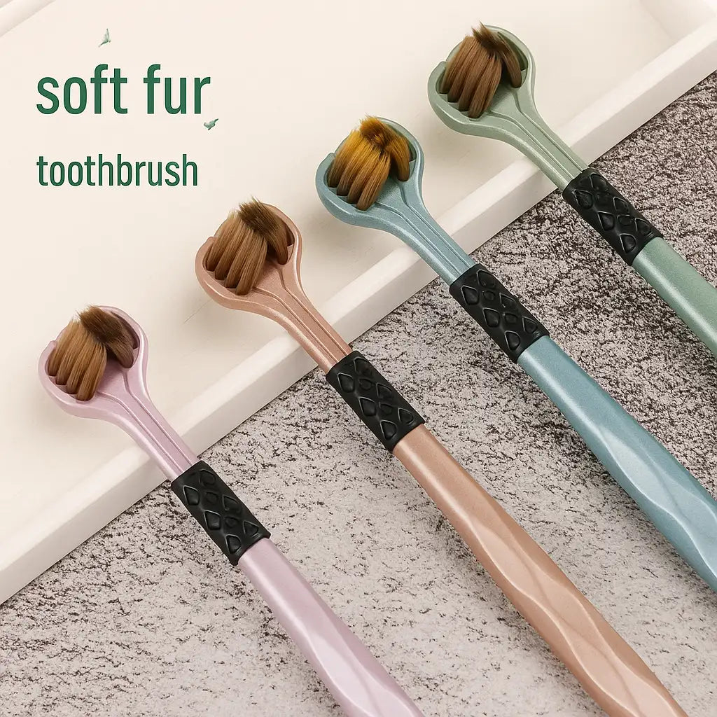 Flat brushes hurt and miss spots. The 3-sided soft bristles clean gently, protecting gums with every stroke