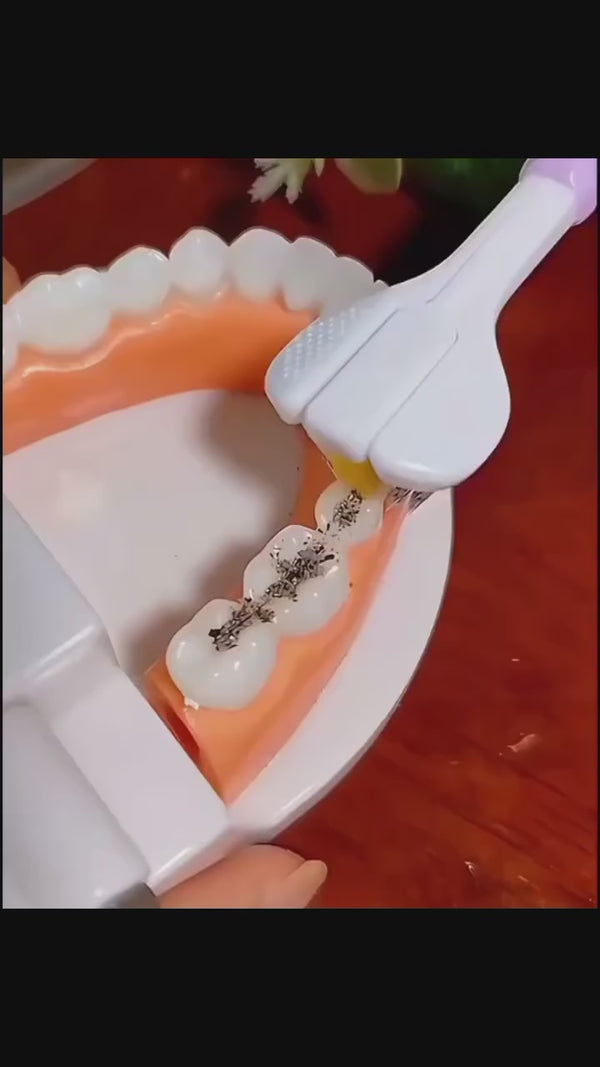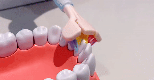 This toothbrush uses a 3-sided design that cleans the front, back, and top of each tooth in one motion. It saves time and ensures no spots are missed, unlike flat brushes.